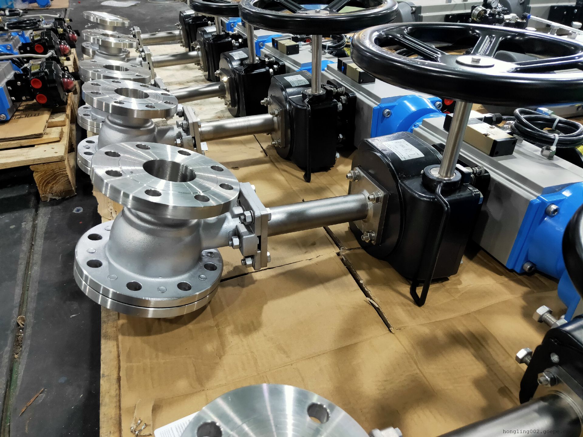 斜杆式釜底放料球阀也称釜底球阀,罐底球阀,放料球阀 反应釜根部阀,针对现有产品设计不足及缺陷,永龙阀门进行设计研发一款新型的三段式釜底阀,阀门采用三段式组合结构,分别为弧形法兰、中法兰和阀体,相比较传统两片式釜底球阀,在罐底安装焊接过程中,由于金属材质导热系数较高,容易造成阀座密封圈损坏,导致阀门出现泄露。新型斜杆罐底球阀安装时,先将弧形法兰取下与罐底焊接,用螺栓与阀体连接,阀体与斜阀杆设计,阀杆于阀体管道呈现出105°的倾斜角,该结构设计避免安装执行机构与罐底接触。无积料设计,球体为弧面设计,在阀门关闭时,球面弧形于连接罐底弧形法兰保持*,形成无死角连接,避免物质残留。 放料球阀技术特征: